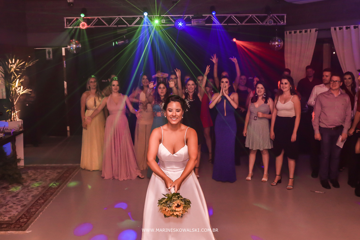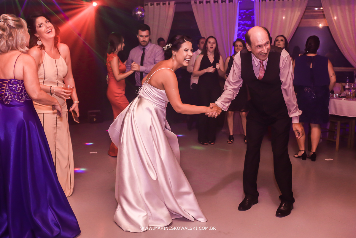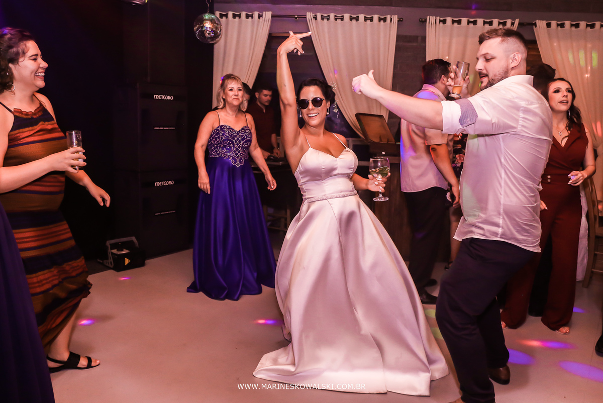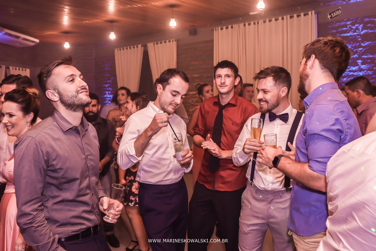 Teve emoção, abraços, sorrisos, olhares, gargalhadas, muita dança, competição de chopp e também o vestido da noiva dando trabalho para as madrinhas hehehe